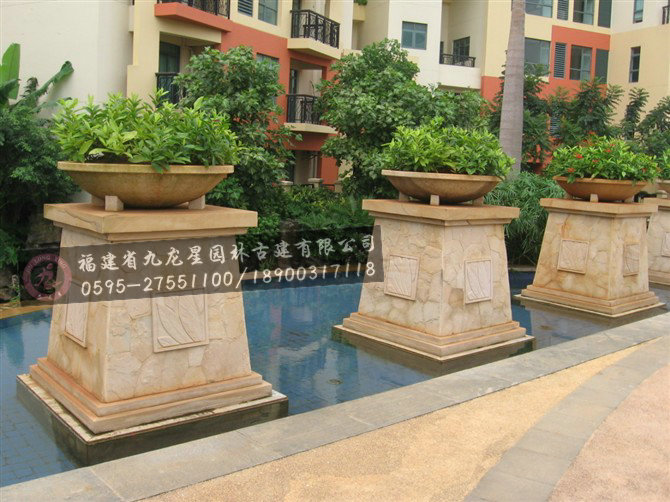 花盆是用于私家花園別墅配套使用的盆狀器物,并廣泛應(yīng)用于園林綠化和景觀工程當(dāng)中,其中以石雕類的花盆最有藝術(shù)效果。石雕花缽質(zhì)地堅(jiān)硬、強(qiáng)度高、抗風(fēng)化、耐腐蝕、耐磨損、吸水性低,美麗的色澤還能豹保存百年以上,顏色美觀。格調(diào)優(yōu)雅,花色繁多,剛性好,耐磨性強(qiáng),溫度變形小。保養(yǎng)方便,使用壽命長。