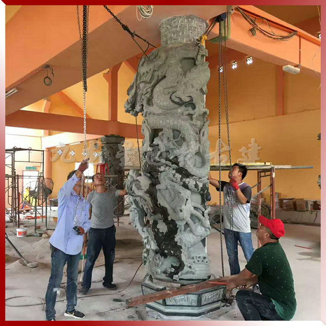 九龍星園林古建寺廟青石龍柱安裝現(xiàn)場(chǎng)