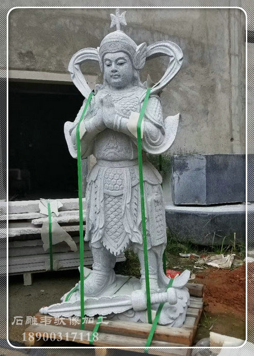 韋馱菩薩雙手合十降魔杵橫于腕造像