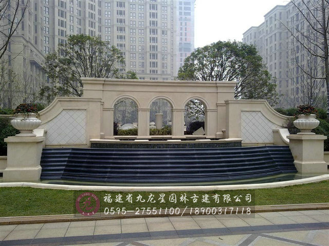 龍頭獅子頭吐水小噴泉?dú)W式景墻石雕裝飾