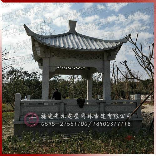 石雕涼亭安裝地點(diǎn):福建泉州晉江 石雕涼亭安裝時(shí)間:2017.01 石雕涼亭材質(zhì)用料:張坂石 石雕涼亭設(shè)計(jì)尺寸:石雕涼亭總高5.2m配套板材、欄桿