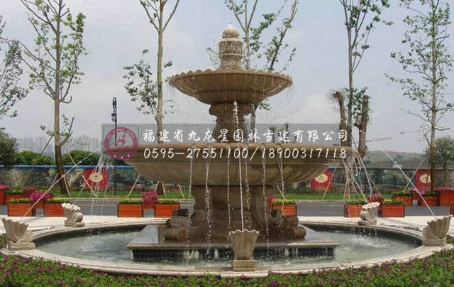 石雕噴泉水景具有美化環(huán)境、烘托活躍 氣氛的功能,能更好體現(xiàn)其美感和自然特性,起到點綴、襯托、渲染裝飾效果。 噴泉水景往往是人們視覺的焦點,是構成一定空間環(huán)境的景觀中心。