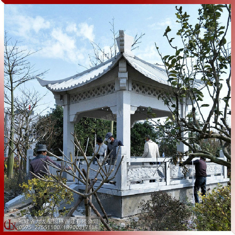 四角石亭子施工圖 石雕涼亭聯(lián)系 石雕之鄉(xiāng)九龍星園林古建