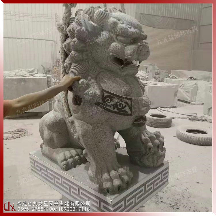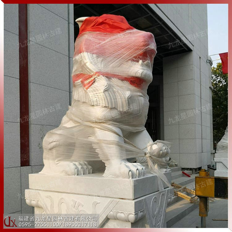 石雕狗獅 銀行門口石獅子 漢白玉石獅子開眼