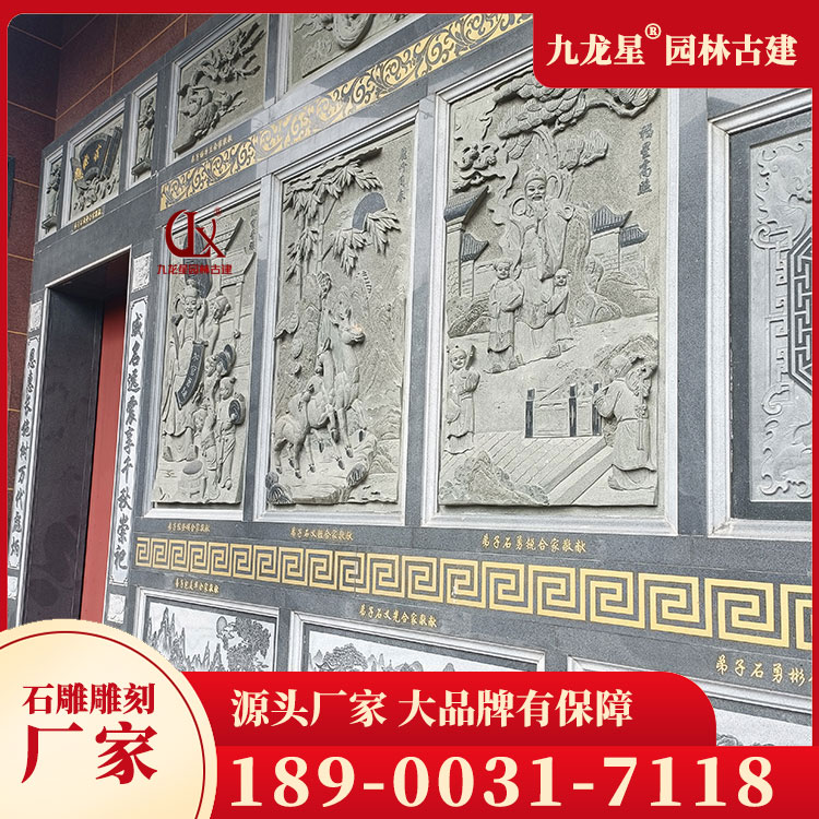 石材雕刻 石雕麒麟浮雕 寺廟外墻壁畫圖案 九龍星